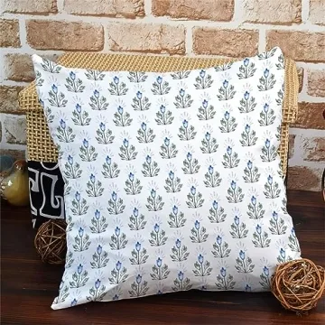 MangGou Blue Lotus Flower Pillow Cover Blue and White Flower Throw Pillow Floral Pillow High End Pillow Accent Pillows for Sofa Couch Chair 18in Birthday Gift