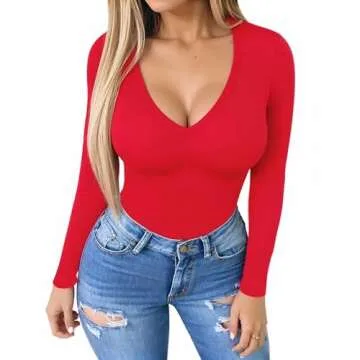 Show moreIntroducing the MANGOPOP Bodysuit Tops for Women Long Sleeve V Neck Bodysuits – the ultimate fashion piece designed for women who love to make a statement. This bodysuit combines comfort with a hint of sexiness, featuring a daring plunge neck and deep V design that is perfect for nights out, parties, or casual outings. Crafted from high-quality material, it ensures a flattering fit while showcasing your curves beautifully. Whether you're dressing up with a skirt or keeping it casual with jeans, this bodysuit will elevate your ensemble to new heights.