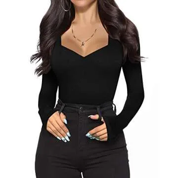 MANGOPOP Sweetheart V Neck Bodysuit for Women Short Sleeve Long Sleeve Body Suits Tops
