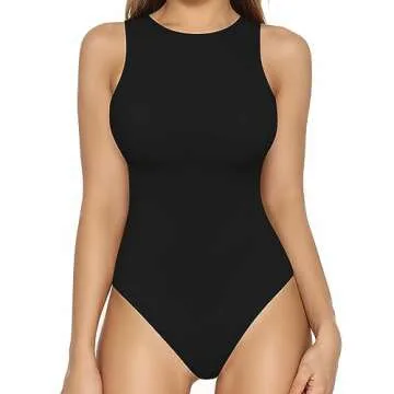 MANGOPOP Women’s Sexy Crew Neck Ribbed Sleeveless Bodysuit - Stylish Comfort
