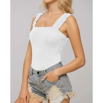 MANGOPOP Square Neck Ruffle Strap Bodysuit - Stylish Comfort for Every Occasion