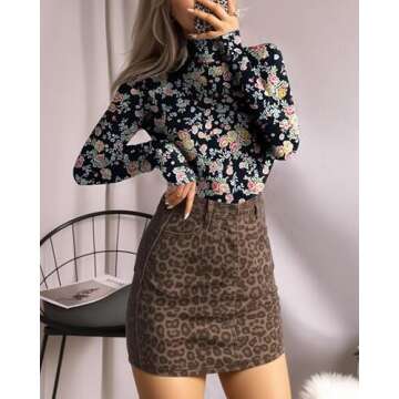 MANGOPOP Women's Mock Turtle Neck Long Sleeve Tops Bodysuit Jumpsuit