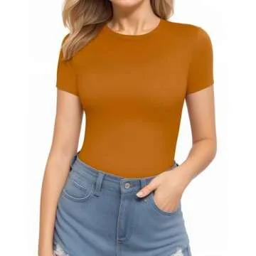 MANGOPOP Women's Round Neck Short Sleeve Basic Bodysuits Collection