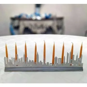 Manhattan Chanukah Menorah New York City Skyline by Valerie Atkisson, Brushed Steel