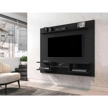 Manhattan Comfort Plaza Floating Entertainment Center for Living Room, Wall Mounted TV Stand with Display Shelves, Wire Management & Mounting Hardware, Fits up to 50" Screens, Black