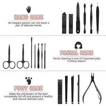 Manicure Set, Jubolion 19pcs Stainless Steel Professional Nail Clippers Pedicure Set with Black Leather Storage Case, Portable Grooming Kit for Travel or Home, Perfect Gifts Women and Men (Black)
