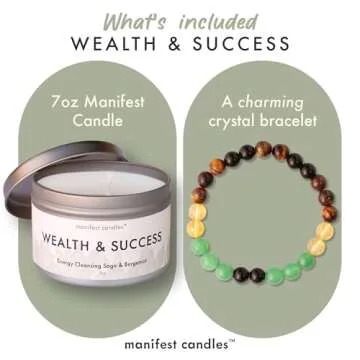 Manifest Candles 7oz Sage & Bergamot Money Candle with Manifestation Bracelet - Protection Candles for Negative Energy - Abundance Candles - Spiritual Candles for Positive Energy - Intention Candles
