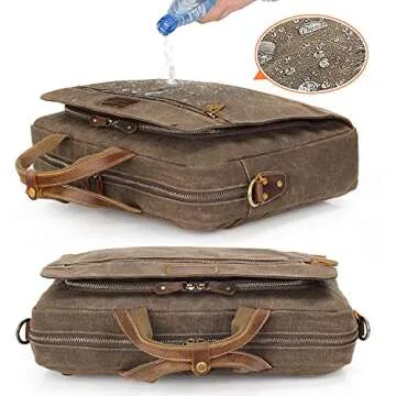 Show moreIntroducing the Manificent Laptop Messenger Bag, an exquisite blend of functionality and style, expertly designed for modern professionals. Crafted from a premium mix of 80% durable canvas and 20% superior cowhide crazy horse leather, this bag is not only robust, ensuring long-lasting use but also age beautifully over time with its unique disordered wrinkles and scratches, imparting an attractive vintage charm. We understand the importance of safeguarding your digital devices; hence, our bag is shock-resistant, allowing you to navigate your busy life with confidence and ease.