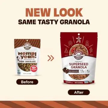 Show moreIntroducing the Manitoba Harvest Hemp Yeah Granola – the perfect blend of nutrition and flavor for health-conscious snackers! This delectable granola features a rich combination of dark chocolate, hemp hearts, and wholesome seeds that bring together the best tastes and textures. Each serving packs an impressive 13 grams of protein, giving you the energy to fuel your day, along with 3 grams of Omega 3 & 6 to support your brain and heart health. With just 4 grams of fiber and less than 10 grams of sugar, you can indulge without the guilt, making it an ideal choice for anyone looking to maintain a balanced diet.