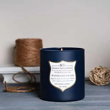 Show moreUnveil the essence of sophistication with the Manly Indulgence Woodland Escape Scented Jar Candle. Designed for the modern man, this exquisite candle combines elegance and masculinity in one beautiful package. Wrapped in a sleek matte navy blue jar with a dark stained wood lid, it showcases a unique crackling wooden wick that enhances the sensory experience with every flicker. Perfectly suited for your home, office, or as a thoughtful gift, this candle transforms any environment into a fragrant oasis. Immerse yourself in the luxurious aroma crafted from a blend of wild berries and orange zest, underlined with the earthy tones of cedarwood and blue spruce, all while enjoying a clean burn that lasts up to 60 hours!
