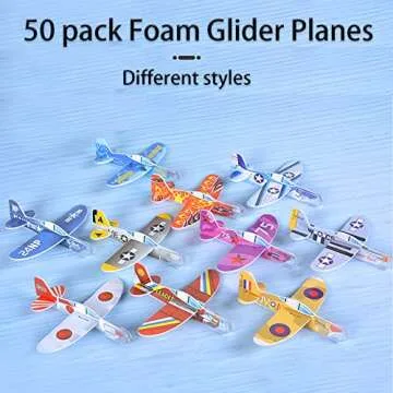 Manmel 50 Pcs Foam Gliders Planes Toys for Kids, Paper Airplane, Party Favors Goodie Bag Stuffers, Outdoor Flying Toys, Bulk for Classroom Prizes Boys and Girls