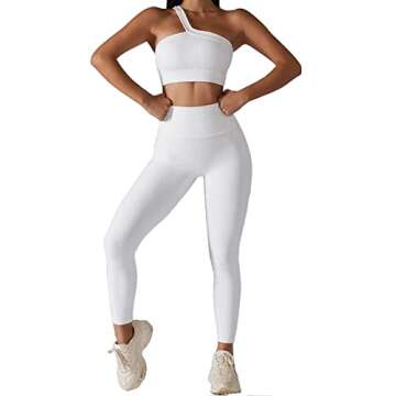 MANON ROSA Ribbed Workout Sets Women 2 Piece Seamless Outfits Gym Clothes Active Wear One Shoulder Sports Bra Legging Tracksuits Yoga White Medium