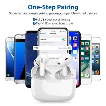Manords True Wireless Earbuds Bluetooth Headphones, Bluetooth 5.1 TWS Stereo Earphones in-Ear Touch Control with Charging Case (White Y113)