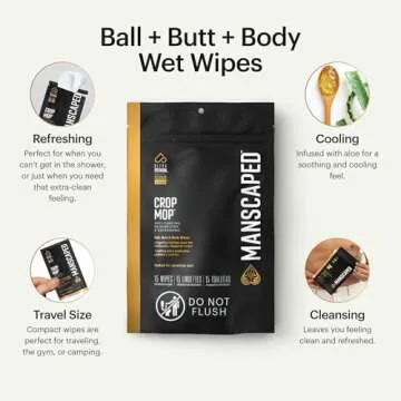 MANSCAPED® Crop Mop® On-The-Go Individually Wrapped Ball Wipes, Anti-Chafing Male Hygiene Body Wipes, Cleaning Wipe Designed for the Male Groin Area with Refreshing and Cooling Aloe Vera, 15 Pack