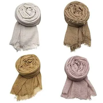 Show moreIntroducing the MANSHU 4PCS Women Soft Cotton Scarf Shawl Long Scarf—a fusion of elegance, softness, and versatility. Crafted from a premium blend of cotton and hemp, these scarves are exceptionally soft and lightweight, providing a luxurious feel against your skin. With generous dimensions of 35.5 x 70.9 inches (90 x 180 cm), each scarf is designed to be worn in multiple ways—whether as a chic wrap on a breezy beach day, a stylish accessory during outings, or a cozy layer for casual and work attire. These scarves not only elevate your wardrobe but also serve as the perfect gift, making them ideal for women of all ages.