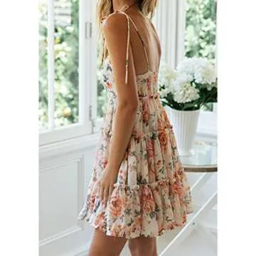 Mansy Womens 2025 Summer Floral Mini Dress Boho Flowy Skater Dresses Short Sleeveless Ruffle Spaghetti Strap Dress Orange Flower