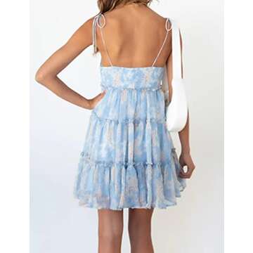 Mansy Womens 2025 Summer Floral Mini Dress Boho Flowy Skater Dresses Short Sleeveless Ruffle Spaghetti Strap Dress Blue Flower