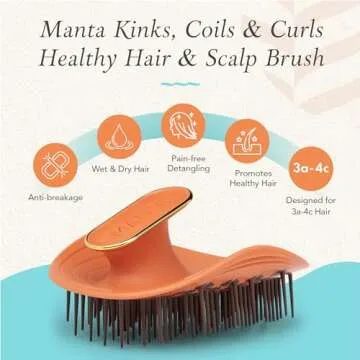 Manta Kinks Detangling Brush - Anti-Static, Curl Defining for 3a to 4c Afro and Curly Hair - Flexible Scalp Brush