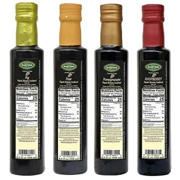Show more Discover the exquisite flavor journey with the Mantova Organic Flavored Balsamic Vinegar of Modena 4-Variety Pack. Handcrafted in the heart of Modena, Italy, this set includes four enticing flavors: Fig, Pear, Pomegranate, and Raspberry. Each bottle showcases the unique combination of a full-bodied texture and vibrant color, crafted to deliver an acidity level of 6% that enhances both sweet and savory dishes. Perfectly certified USDA Organic, these vinegars are made with pure organic fruit, making them not only a culinary delight but also a healthy choice for everyday use.