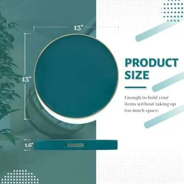 MAONAME 13" Round Tray - Teal Serving Tray with Elegant Handles