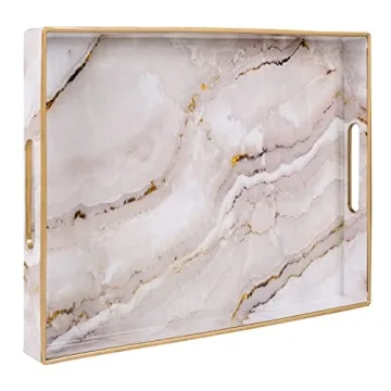 MAONAME Plastic Decorative Tray - Premium Marbling Design with Handles