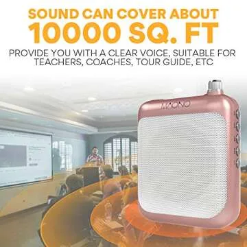 Show moreIntroducing the MAONO Voice Amplifier—the ultimate portable solution for anyone who needs to make themselves heard! Designed with functionality and ease of use in mind, this compact device packs a remarkable punch with a sound output of up to 126dB, making it the perfect companion for teachers, coaches, performers, and anyone who speaks to large groups. Imagine being able to cover an impressive range of 10,000 sq. ft. effortlessly. This means you can resonate your voice clearly in any environment, from bustling classrooms and outdoor events to crowded shopping malls.