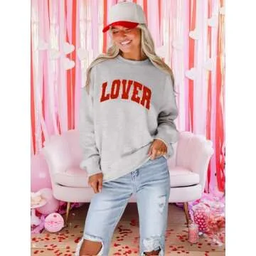 MAPICK Lover Crewneck Sweatshirt Women Valentine's Day Lover Chenille Patch Sweaters Oversized Long Sleeve Clothes(Light Grey,Large)