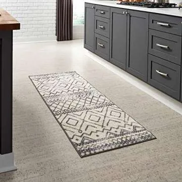 Maples Rugs Abstract Diamond Modern Distressed Non Slip Runner Rug For Hallway Entry Way Floor Carpet [Made in USA], 2 x 6, Neutral