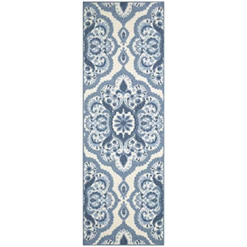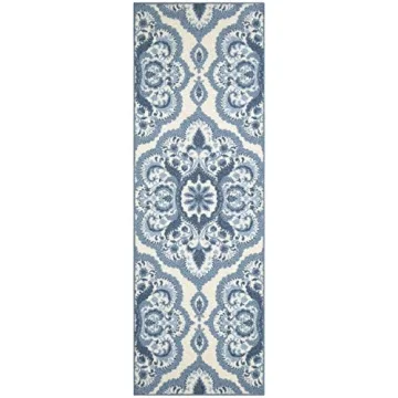 Beautiful Non-Slip Hallway Runner Rug by Maples - 2 x 6, Medallion Pattern in Blue