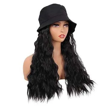 MapofBeauty 24 Inch /60 cm Hat Wig Women Beautiful Long Wavy Curly Synthetic Daily Use Wig (Black)