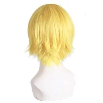 MapofBeauty Men's Short Straight Wig Cosplay Costume Wig (Yellow)