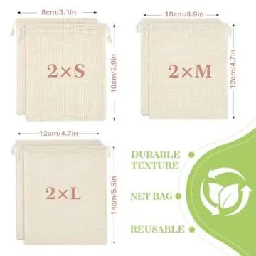 MAQIHAN 6 Pack Reusable Produce Bags Cotton Mesh Produce Bags Mesh Storage Produce Bags Reusable Durable Double Stitched With Drawstring Produce Bag For Vegetables,Fruit & Grocery Shopping (2L,2M,2S)