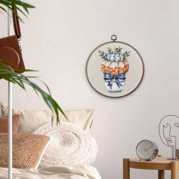 MAQIKA Fall Pumpkin Framed Wall Art Decor, Chinoiserie Decor, Fall Wall Decor, Blue and White Round Wall Hanging Decor, Pumpkin Decor Canvas Prints Art for Living Room Bathroom Kitchen, 10x10 Inch
