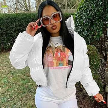 Maqroz Women's Crop Short Jacket Cropped Puffer Fashion Winter Shiny Zip Up Short Bubble Puffy Coats White
