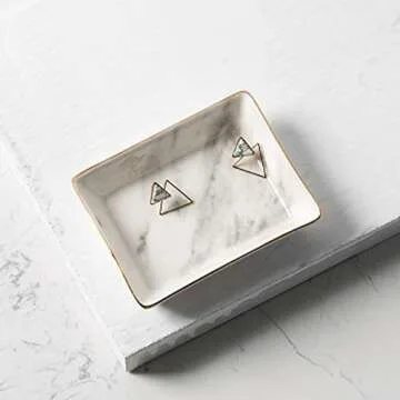 Marble Ceramic Jewelry Tray Ring Dish Ring Holder Display Organizer with Golden Edged Wedding Valentine's Day Housewarming Gift