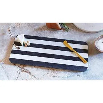 Show moreIntroducing our exquisite Marble Cheese Board, where elegance meets functionality. Featuring a classic black and white striped design, this serving tray transforms any food spread into a charming presentation, making it the perfect addition to your kitchen or dining table. Handcrafted from genuine marble, it not only boasts a stunning aesthetic but also showcases the natural beauty of the stone with each piece uniquely different in color and pattern. Measuring approximately 14.5 x 6 inches, this board is ideal for serving multiple cheeses or small appetizers during your gatherings, ensuring your entertaining is as stylish as it is delicious.