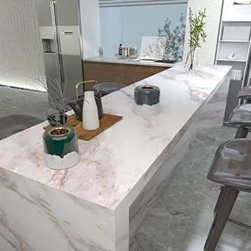 Marble Contact Paper for Countertops Marble Wall Paper Matte Peel and Stick Wallpaper Removable Self Adhesive Granite Vinyl Film Waterproof Roll 15.7”×79” Thick, Easy to Clean & Install White/Gold
