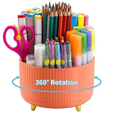 Show more Introducing the Marbrasse Desk Organizer – 360-Degree Rotating Pen Holder, the ultimate solution tailored for anyone looking to enhance their workspace organization with style and efficiency. This expertly crafted desktop organizer is not just a storage caddy; it is a revolutionary tool designed for artists, students, and professionals alike. With its sleek orange design, it adds a pop of color while seamlessly blending into any decor. Imagine having all your essentials at your fingertips, reducing clutter and boosting productivity in the process.