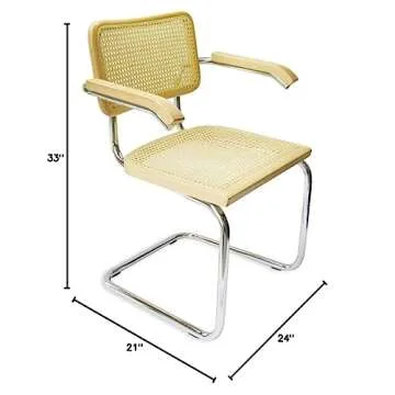 Marcel Breuer Cesca Cane Cantilever Armchair Arm Chair w/Chrome Frame & Natural Wood (Made in Italy)