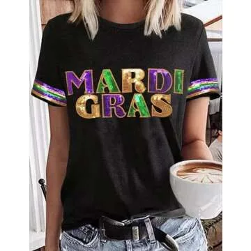 The design incorporates sparkling glitter details that enhance the festive vibe while providing a flattering fit. It’s not just a shirt; it’s a statement piece that embodies the merriment of carnival, making it perfect for social gatherings and celebrations. Its versatility allows you to pair it with your favorite jeans or festive accessories, making it a go-to outfit choice during the carnival season.