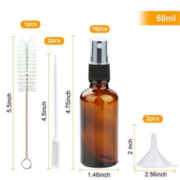 Maredash Amber Glass Spray Bottles, 16 Pack 50ml Refillable Storage Bottles for Essential Oils
