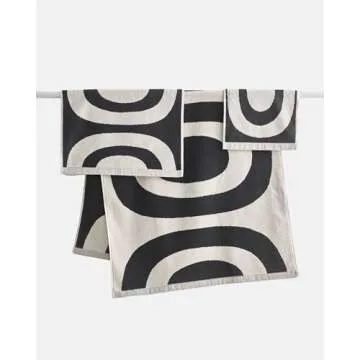 MARIMEKKO Melooni Terry Cotton Washcloth (Charcoal) – Natural Forms Patterned Washcloths – 12 in x 12 in