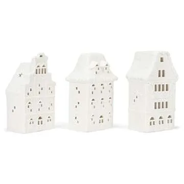 Mark Feldstein & Associates Village Row House White 8 x 4.5 Porcelain Holiday Tea Light Figurines Set of 3
