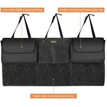 MARKSIGN Deluxe Trunk Organizer with 3 Mesh Pockets, High-elasticity Mesh Pockets for Balls, Top flap Pockets for Kids and Pets, Reinforced Never-sag Design…