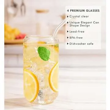 Marksle Home Glass Cups With Lids And Straws - 16oz Iced Coffee Cup 4pcs Set - Glass Iced Coffee Cups with Lids – Glass Tumbler with Straw and Lid - Glass Cups Set - Vasos De Vidrio