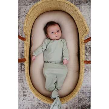 Show moreWelcome your little one into the world with the Marlowe & Co Organic Cotton Knotted Newborn Baby Gown. Designed for ultimate comfort and convenience, this sleeper gown is made from 100% organic cotton, ensuring a soft, breathable, and gentle touch on your baby's delicate skin. Perfectly crafted for newborns, this knot-style gown features a beautiful mint sage color, ideal for both baby boys and girls. The adjustable knot design allows for easy diaper changes while providing a snug fit that keeps your baby cozy throughout the night. With an emphasis on safety and style, this gown is free from harsh chemicals and is a thoughtful choice for any new parent.