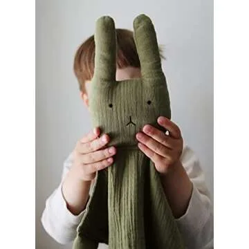 Marlowe & Co Organic Cotton Muslin Lovey Blanket, Organic Cotton Muslin Bunny Security Blanket (Moss Green)