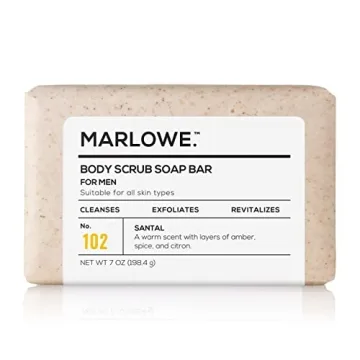Show moreMARLOWE. No. 102 Men’s Body Scrub Soap redefines the art of cleansing with its luxurious formula crafted for the modern man. This 7 oz exfoliating bar soap is designed not only to cleanse but also to rejuvenate your skin, providing an unmatched refreshing experience. Loaded with natural ingredients like apricot seed powder and ground pumice, it effectively buffs away dryness, revealing smooth and healthy skin. The incorporation of sheabutter and olive oil works to moisturize while ensuring you feel clean without any heavy or greasy residue. Enjoy a shower experience like no other with the warm notes of Santal, a blend of amber, spice, and citron that serves as the perfect finishing touch to your grooming routine.
