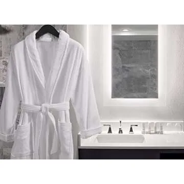 Marriott Terry Velour Robe - Bath Robes for Women - Ladies White Hotel Robe with Shawl Collar and Self-Tie Belt - Women's Robes - Spa Robe - Bathrobe for Women - One Size