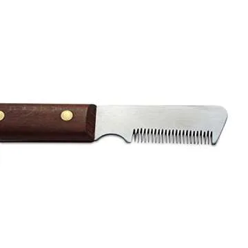 When comparing the Mars Stripping Knife to other grooming tools on the market, its unique slant tooth design and tapered edge set it apart. Many competing products use subpar materials that compromise durability and performance. The exceptional build quality of Mars, coupled with its precise design, makes it easier to execute detailed grooming work, ensuring efficient removal of undercoat without damaging the outer coat.